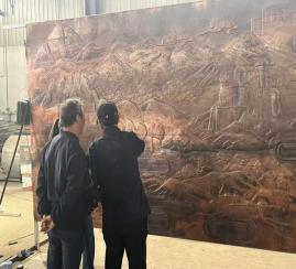 为确保高质量完成藏医药博物馆三幅古铜壁画设计锻造,近日,藏医药博物馆建设指挥部格桑巴珠同志带领博物馆古铜壁画工作组赴厂家就壁画锻造设计制作工作进行具体对接。
